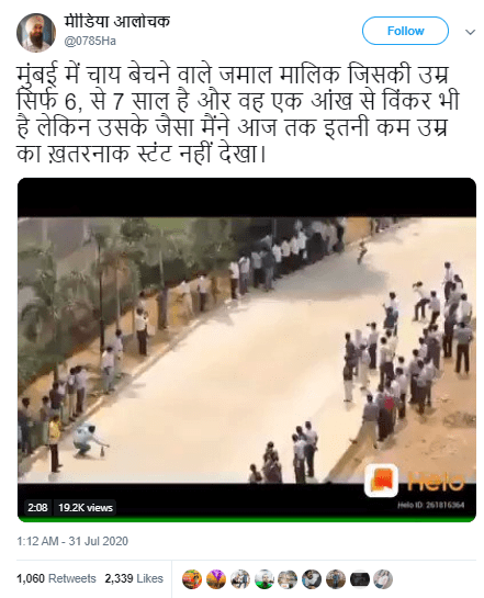 Therefore, Chennai boy Henry performing stunts on skates has been misidentified as “Jamal Mallik from Mumbai” who is a fictional character from the movie ‘Slumdog Millionaire’.