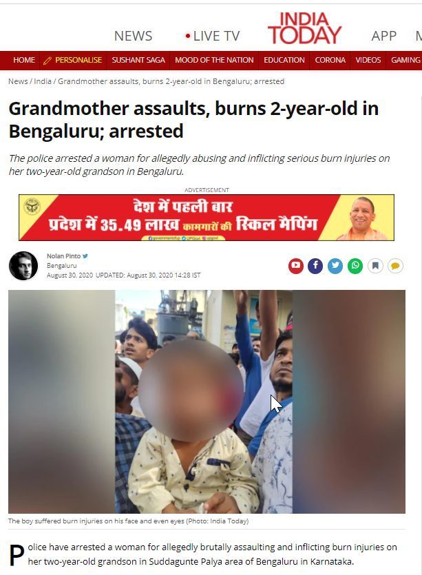 When we did a keyword search on Google, we came across a report by India Today dated August 30. It stated that this incident had taken place in Bengaluru. It also mentioned that the woman beating the child was actually his grandmother. The woman tried to burn the 2-year-old child with a candle, in addition to attacking his mouth, chest and stomach. According to the report, the woman had been arrested for torturing the child after the video surfaced.