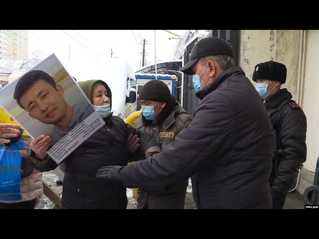A mother held a protest outside the Chinese Consulate in Kazakhstan’s largest city, Almaty, on February 10 after a Kazakh court found her son Baibolat Kunbolatuly guilty of violating the law on mass gatherings.