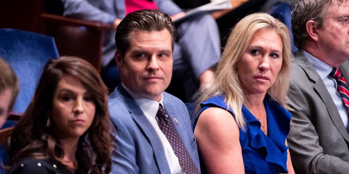 To squeak out his win, though, he had to hand big chunks of his official power to a gaggle of extremist, far-right-wing legislators who are – in a word – BONKERS. Marjorie Taylor Greene, Paul Gosar, and other members of the GOP’s Kooky Kaucus promote unhinged QAnon conspiracy theories, warn that Jews are firing lasers from outer space to start wildfires, lionize Vladimir Putin and Adolf Hitler, call for the execution of Democratic leaders, and insist that the government is staging school shootings as an excuse to outlaw guns.
