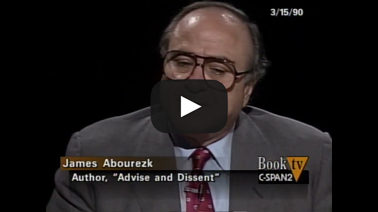 Following the release of his Advise and Dissent: Memoirs of South Dakota and the U.S. Senate, in a 1990 interview with C-SPAN’s “Book TV” Abourezk talked about how much more he enjoyed life after leaving the Senate. But he added with a seeming touch of guilt that this meant others — Palestinians, Native Americans, consumers — would be worse off.